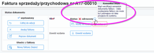 - Jeśli dokument zostanie oznaczony przez KSeF jako odrzucony – odczytaj przyczynę wskazując ikonę „i”