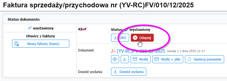 - Uwaga: odpięcie faktury w CRM, nie powoduje jej usunięcia z systemu KSeF