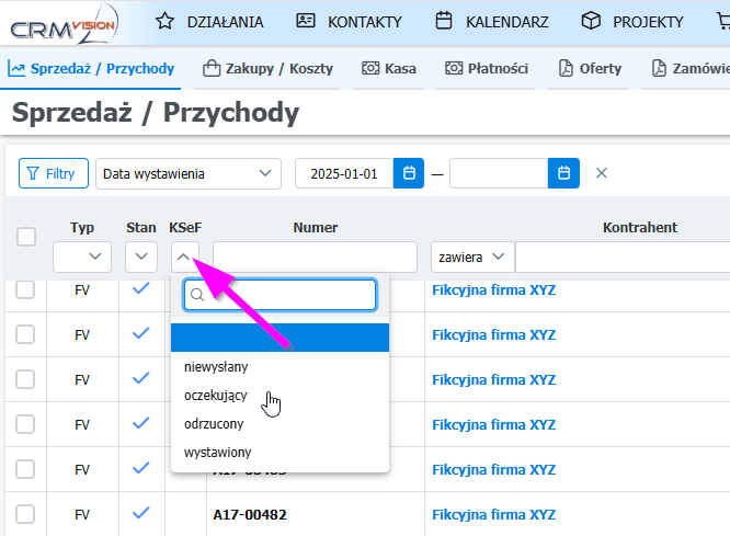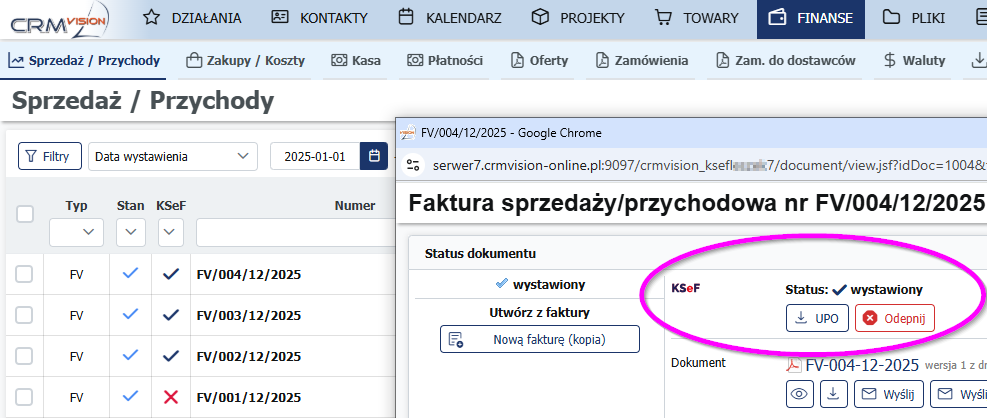 2. Wystawienie e-faktury KSeF w systemie CRM Vision
