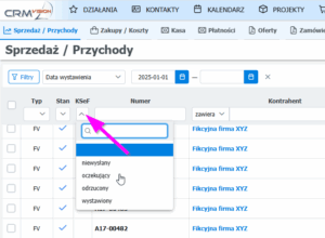 - Filtrowanie statusu z poziomu listy faktur: