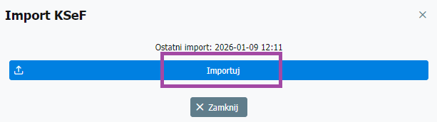 - Wybierz przycisk Import KSeF