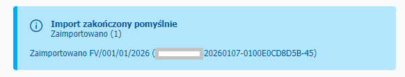 - Po wykonaniu importu otrzymasz informację zwrotną z podsumowaniem. Przykładowo: