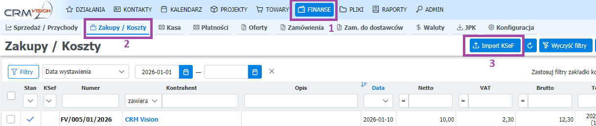 - ✅ Twój system CRM Vision jest gotowy na pobieranie faktur kosztowych z KSeF